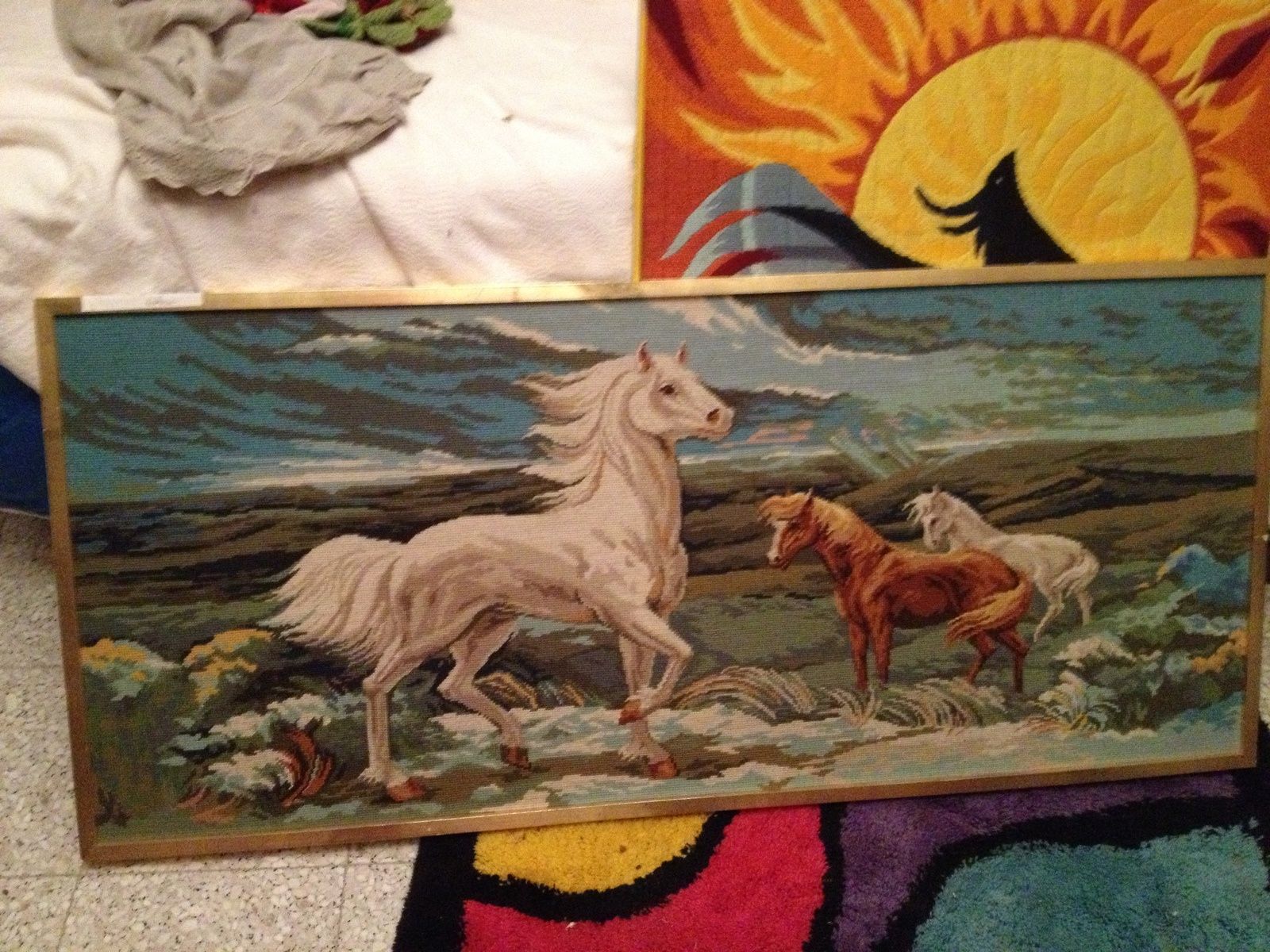 comme promis ma réalisation avec l'autre moitié du canevas cheval. Mon amie Lo.. tient un centre équestre et elle part souvent le we à travers l'ile pour des compétitions... il lui fallait un sac de circonstance.